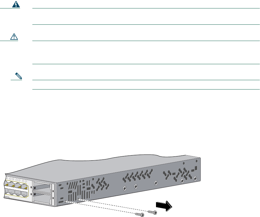 To install the switch in a rack, you must first remove the screws from the switch chassis so that the