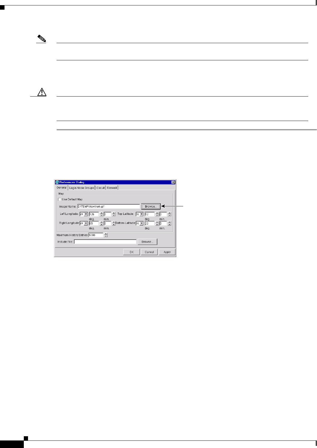 Step 2 On the General tab of the Preferences dialog box (Figure 2-10), deselect Use Default Map.