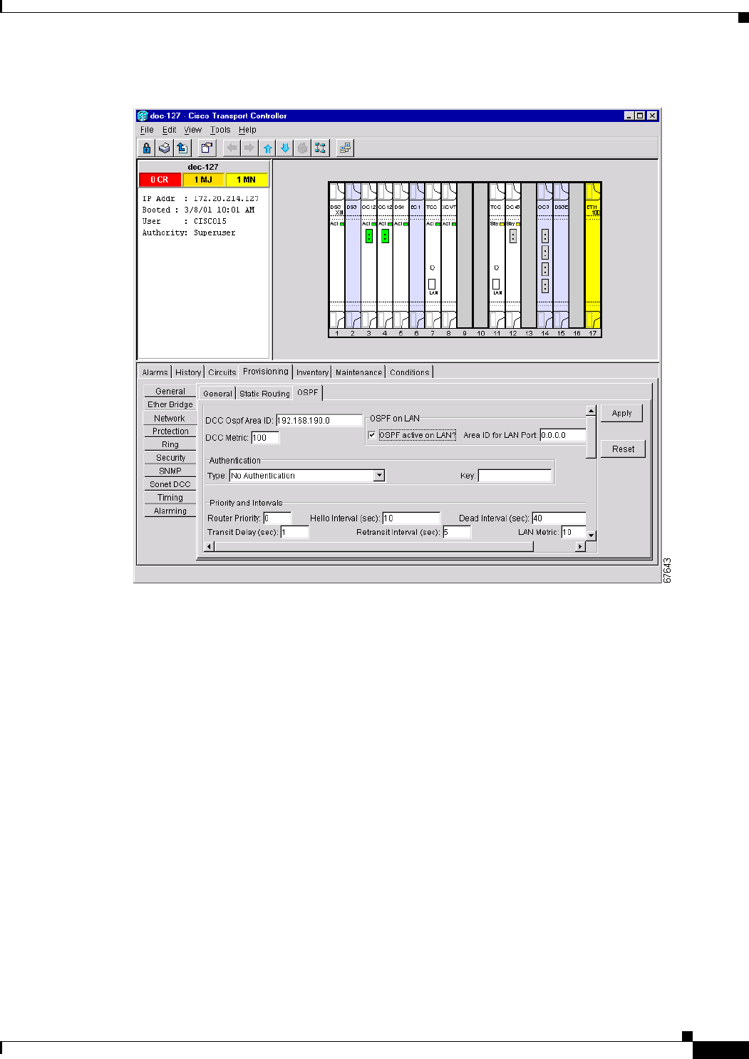 • DCC OSPF Area ID—Enter the number that identifies the ONS 15454s as a unique OSPF area. The