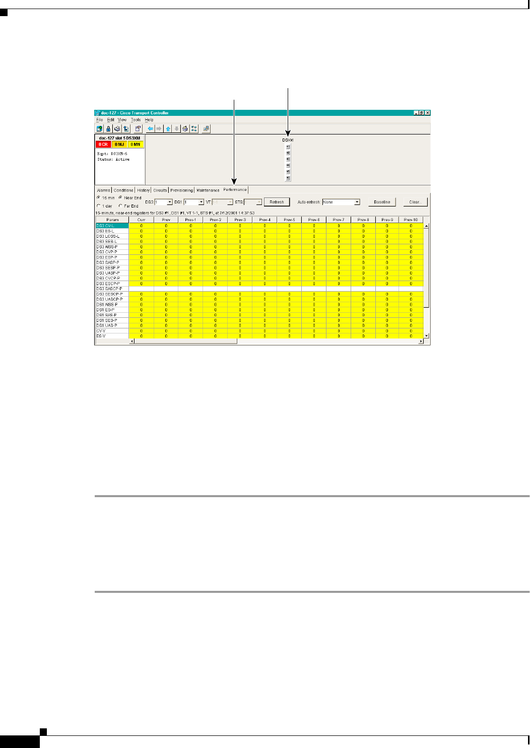 Step 3 View the PM parameter names that appear on the left portion of the screen in the Param column. The