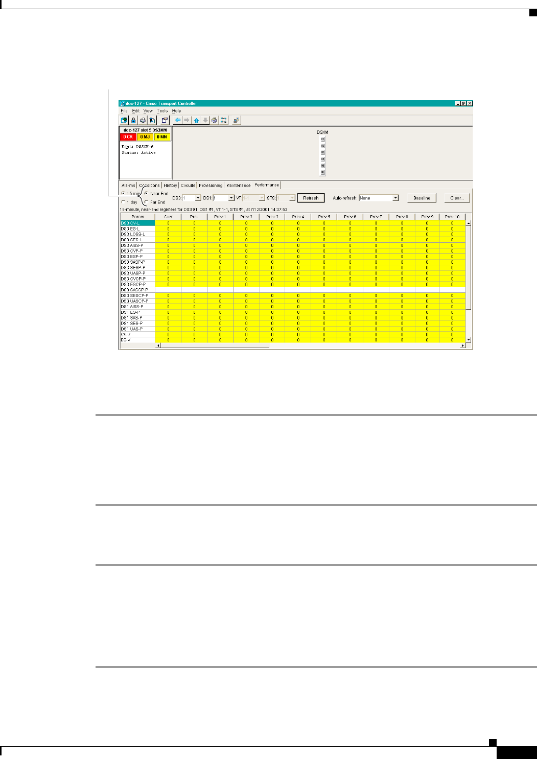 Procedure: Select Near End PMs on the Performance Monitoring Screen