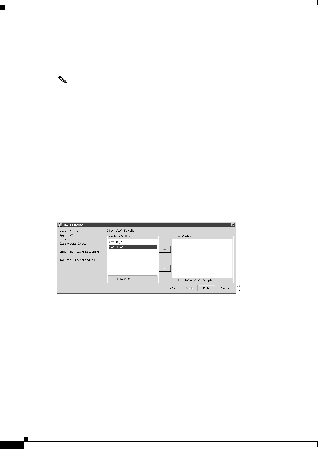 The Circuit Creation (Circuit VLAN Selection) dialog box opens (Figure 9-11 on page 9-12).