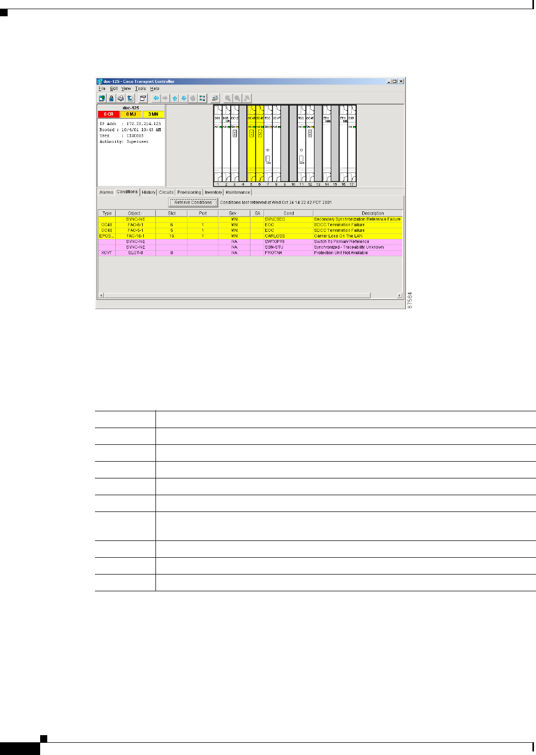 Figure 10-4 Viewing fault conditions retrieved under the Conditions tabs