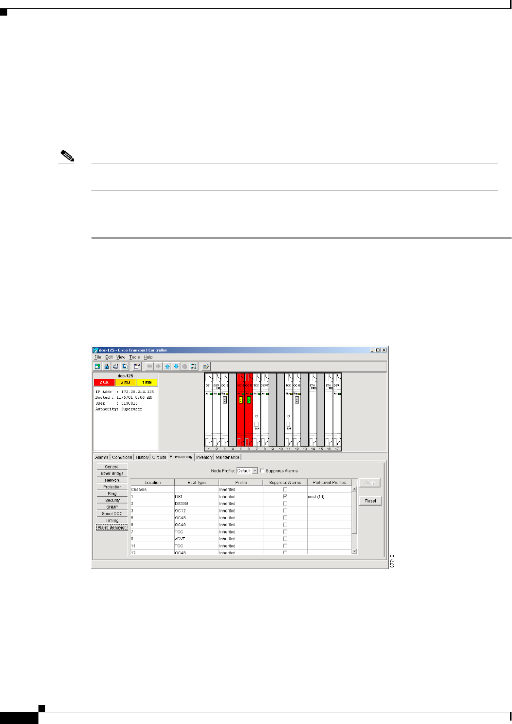 Step 1 At either the card view or node view, click the Provisioning > Alarm Behavior tabs.