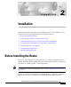 C H A P T E R 2 Installation This chapter provides procedures for installing the Cisco 1711 and Cisco 1712 Security Access routers and includes the following sections: • Before Installing the Router • Connecting the Router to Your Local Network • Connecting the Router to Your Service Provider’s Equipment • Connecting Networked Devices to the Router’s Switch Ports • Connecting Power to the Router • Verifying Your Installation • Optional Installation Steps Before Installing the Router The Cisc