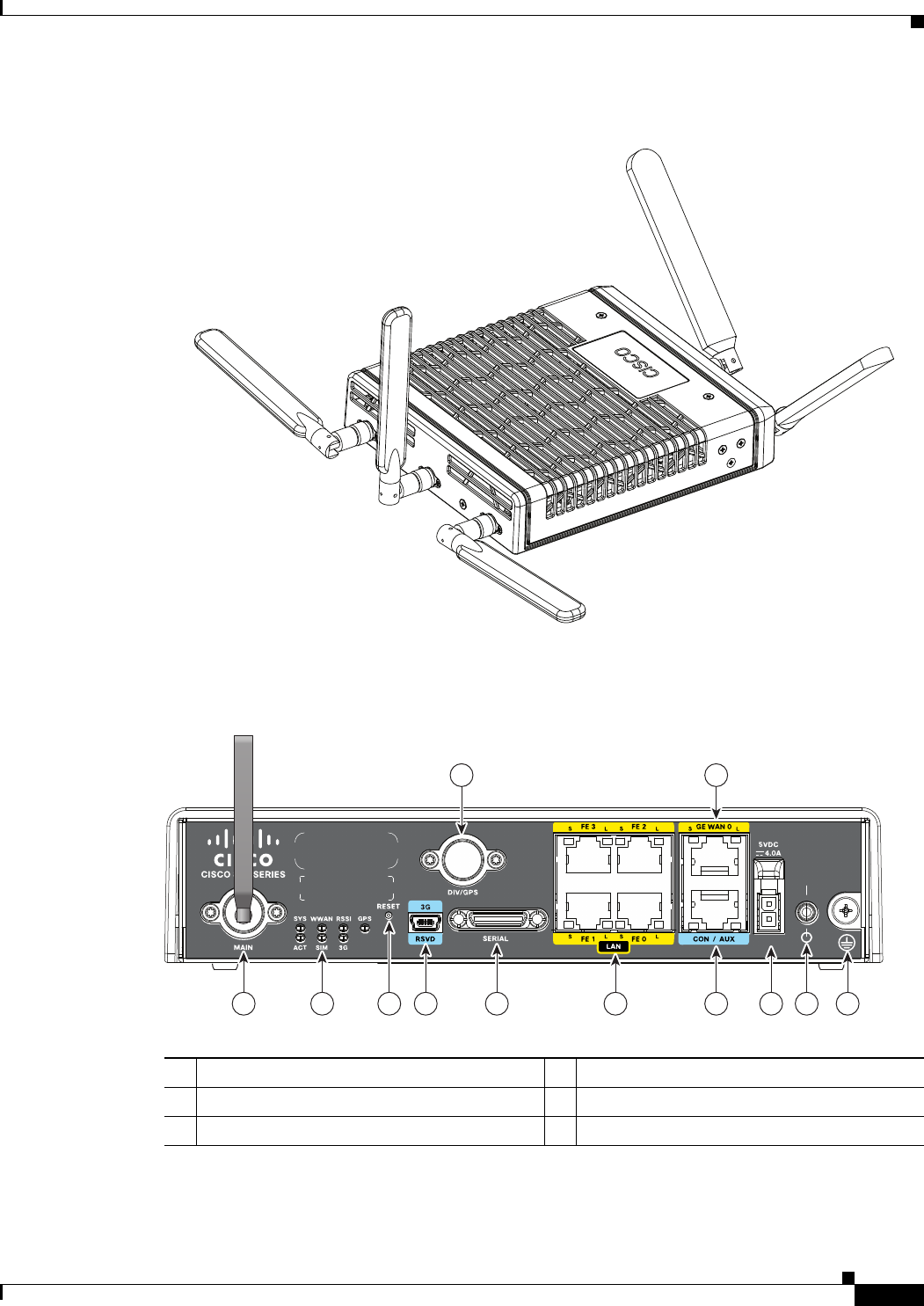 Figure 1-3 shows the front panel details of the Cisco 819HG ISR.