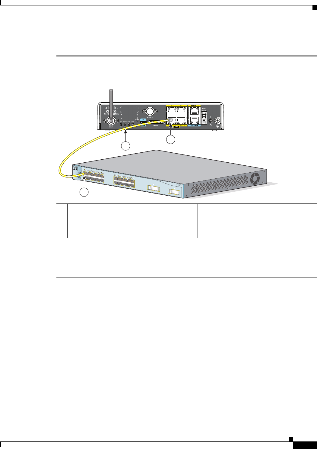 Step 1 Connect one end of the yellow Ethernet cable to an Ethernet switch port on the router. (See Figure 3-2.)