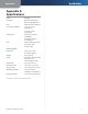 Specifications Appendix A Appendix A: Specifications Model EG005W Standards IEEE 802.3, IEEE 802.3u, IEEE 802.3ab, IEEE 802.3x Ports 5 RJ-45 10/100/1000 Mbps ports Speed Per Port (Mbps) 10 or 100 or 1000 (Half Duplex) 20 or 200 or 2000 (Full Duplex) Cabling Type Category 5e or Better (1000Mbps) Category 5 or Better (10/100Mbps) LEDs Power, Link/Act (per port), Speed (per port), FDX (per port) Environmental Dimensions 7.32" x 1.89" x 6.06" (186 x 48 x 154mm) Weight Power 17.