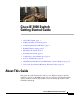 Cisco IE 3000 Switch Getting Started Guide • About This Guide, page 1 • Taking Out What You Need, page 2 • Connecting Expansion Modules, page 3 • Running Express Setup, page 5 • Managing the Switch, page 9 • Installing the Switch, page 11 • Connecting to the Switch Ports, page 21 • In Case of Difficulty, page 25 • Obtaining Documentation and Submitting a Service Request, page 28 • Cisco One-Year Limited Hardware Warranty Terms, page 28 About This Guide This guide provides instructions on