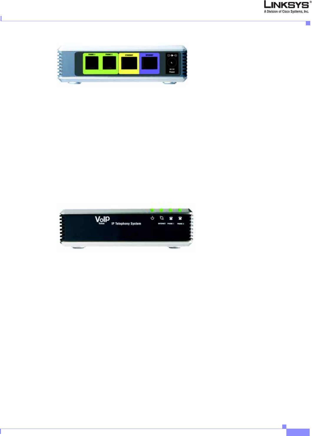 • Phone 1/2—Steady green: active/registered connection to ITSP through port. Flashing: in use or off