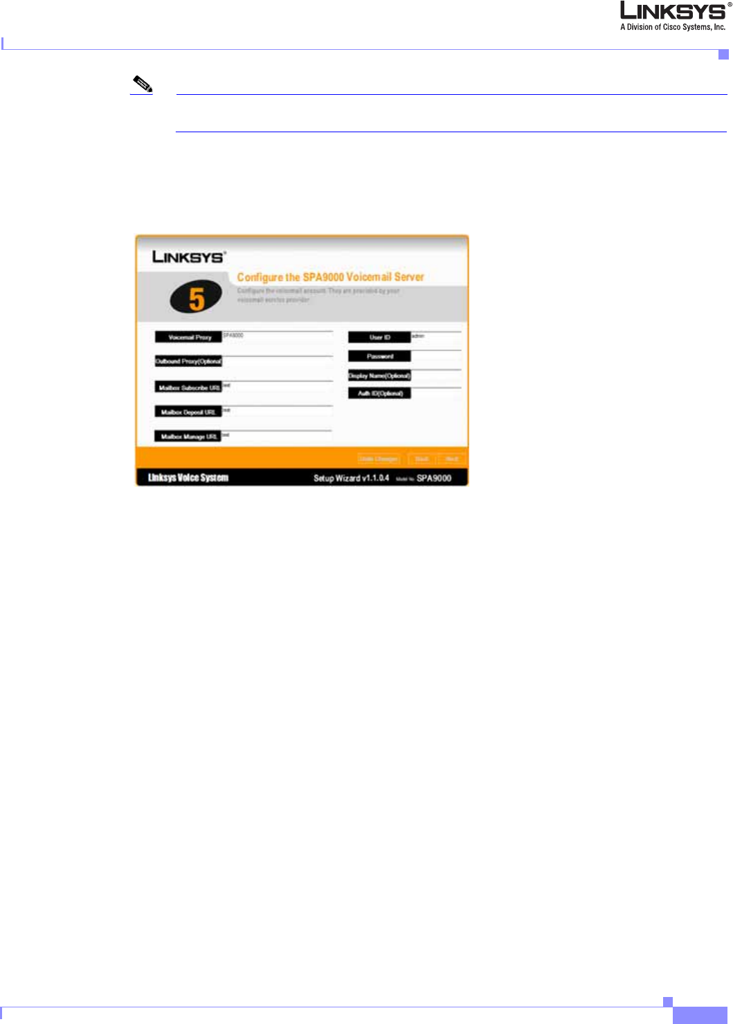 • Mailbox Deposit URL—URL that the SPA9000 contacts when clients and external callers need to
