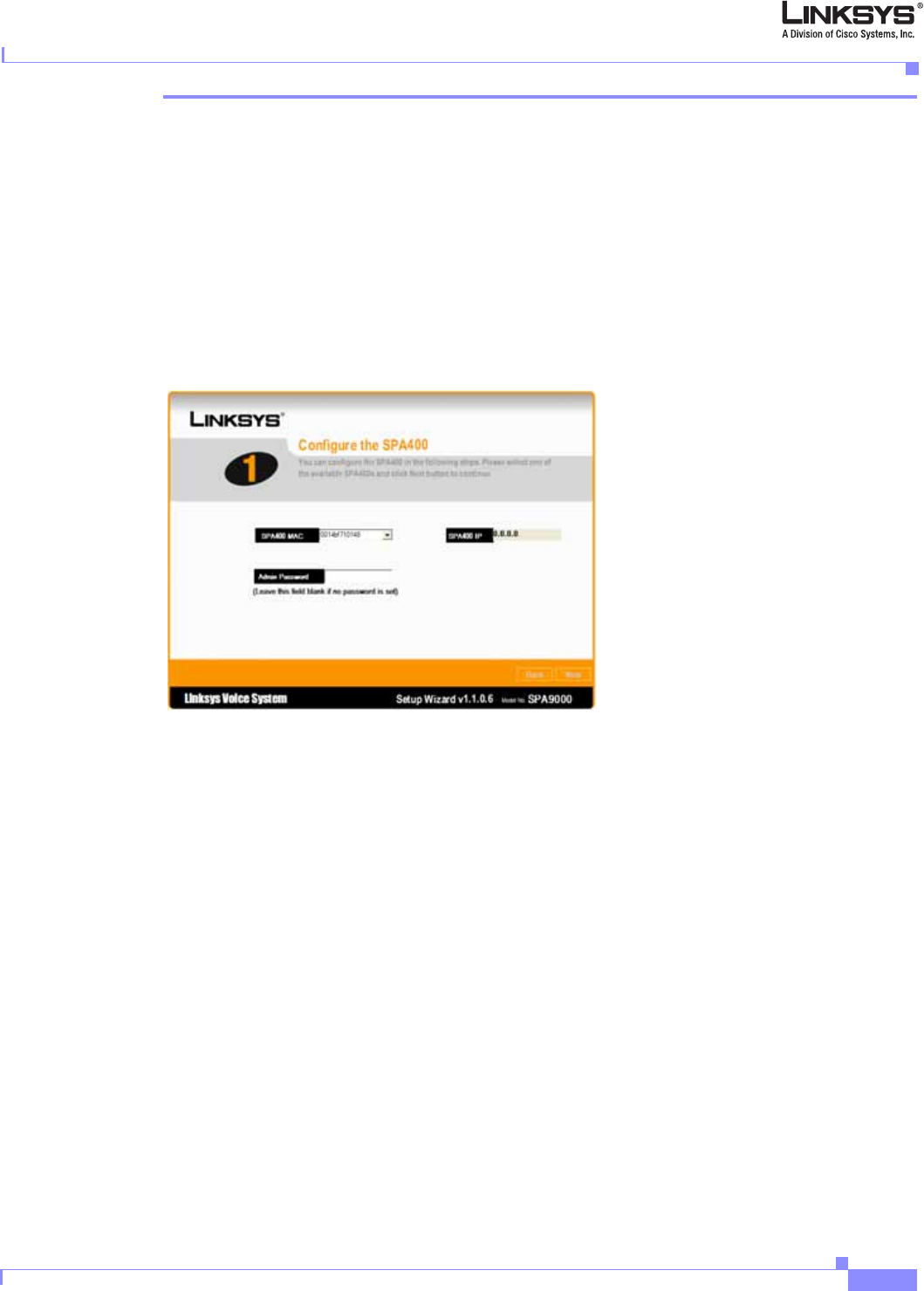 on the second page, enter the IP address of the SPA9000 and the password and click Next and the system