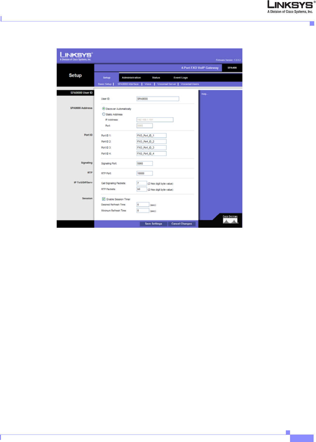 Figure 3-15 SPA400 Administration Web Server—Setup/SPA9000 Interface Page
