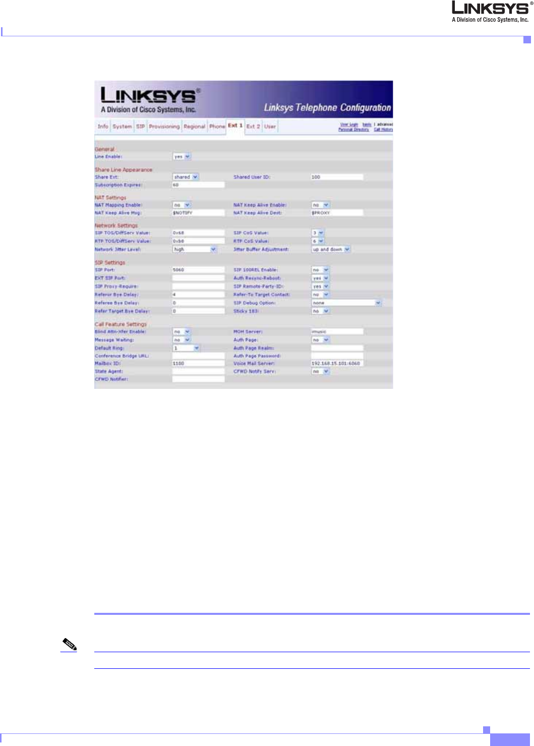 Figure 3-19 SPA900 Series IP Phone Administration Web Server—Ext 1 Page