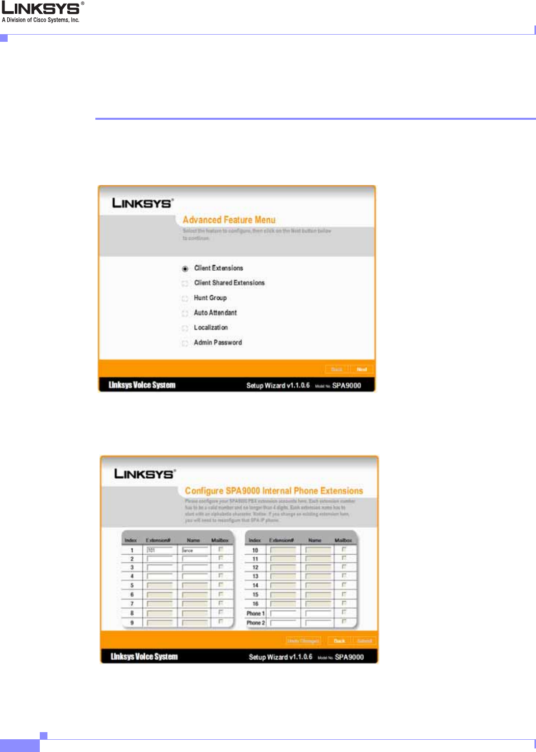 To use the Setup Wizard to modify the configuration of the client extensions on the SPA9000, complete