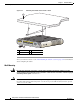 Chapter 2 Switch Installation Installing the Cable Guard (Optional) Figure 2-31 Attaching the Cables to the Switch 2 SYST STAT SPD 1 2 PoE PD CONSOL E POWER OVER 3 4 Catalyst 5 6 7 ETHERN ET 2960-C Series PD 8 1 208918 DPLX MODE 2 1 1 Step 4 2 Cable guard Pivot direction for cable guard pivots Guide the connected cables through the slots in the front of the cable guard. Slide the cable guide in as shown in Figure 2-33. Tighten the screws.