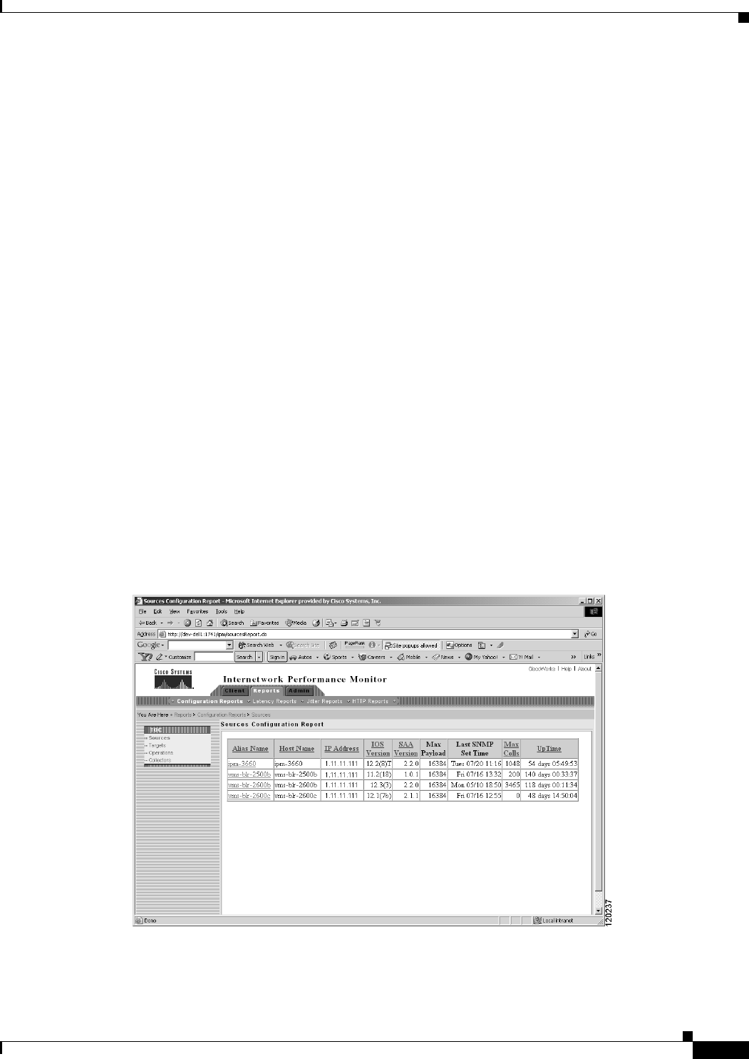 Performance Monitor > Reports > Configuration Reports > Sources on the CiscoWorks homepage.