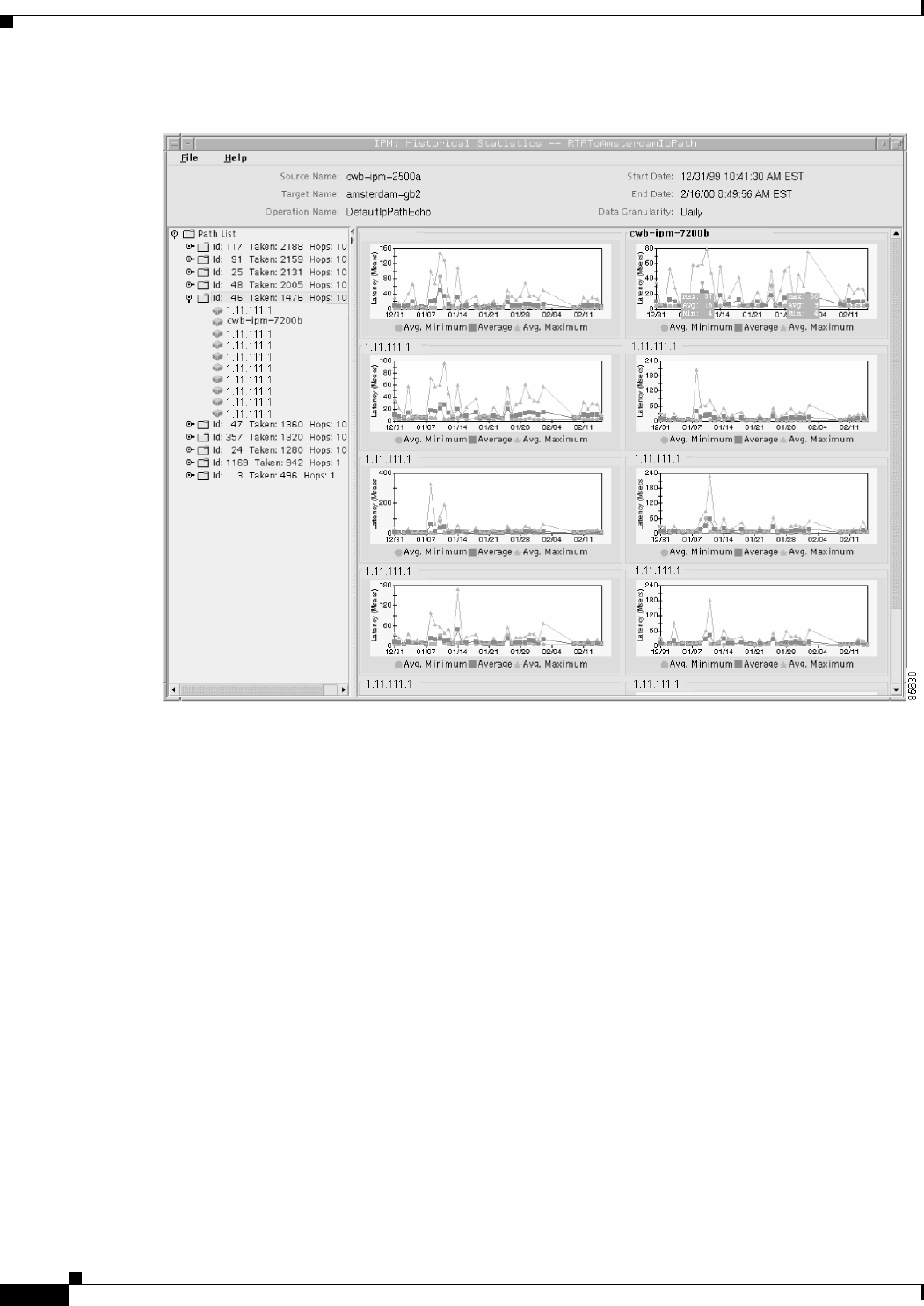 Figure 3-15 IP Path Echo Historical Statistics Window—All Hops in a Path
