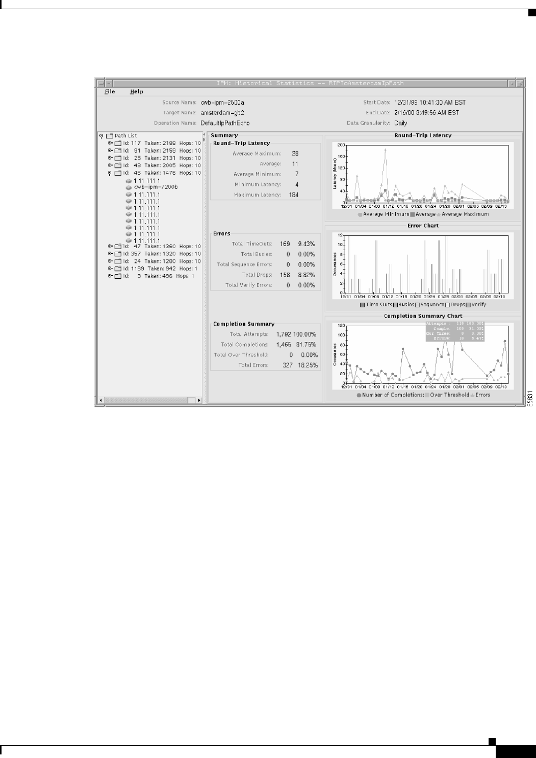 Figure 3-16 IP Path Echo Historical Statistics Window—One Hop