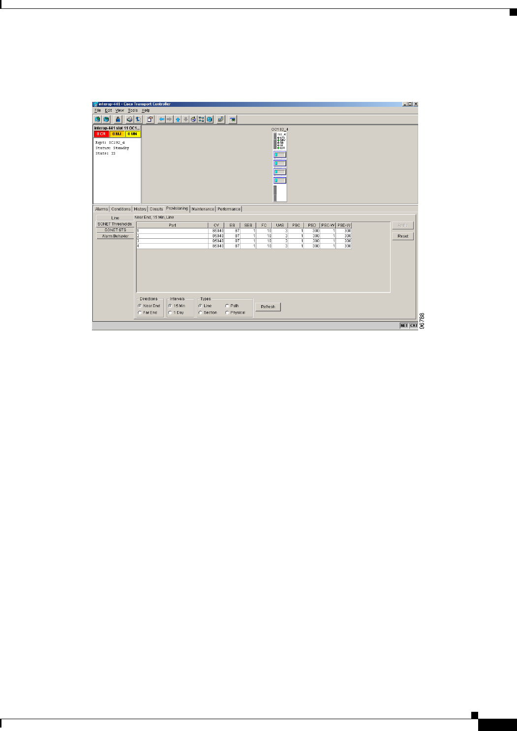 Step 7 Click the Thresholds subtab. The default selection is Near End, 15 Min, and Line (Figure 11-1).