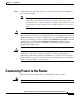 Chapter 2 Installation Optional Installation Steps Connecting a PC to the Router’s Console Port If you want to configure the router by using the Cisco IOS command-line interface, you must connect the router console port to a terminal or PC. The cable and adapter required for this connection are included with the router. To configure the router by using a PC, the PC must have some type of terminal emulation software installed.