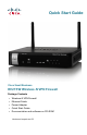 Quick Start Guide Cisco Small Business RV215W Wireless-N VPN Firewall Package Contents • Wireless-N VPN Firewall • Ethernet Cable • Power Adapter • Quick Start Guide • Documentation and software on CD-ROM Version en français sur CD