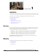 CH A P T E R 1 Installation This chapter provides instructions for installing the Cisco 2900 Series IP Dome cameras. This chapter includes these topics: • Overview, page 1-1 • Mounting, page 1-1 • Installing the Dome Drive, page 1-8 • Installing the Lower Dome, page 1-9 • Switch Settings, page 1-11 Overview The Cisco 2900 Series IP Dome cameras are designed with ease of installation and ease of maintenance in mind.
