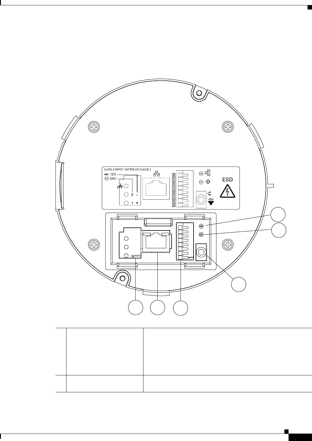 Figure 1-1 and the table that follows describe the items on the top of the 2621 IP dome.