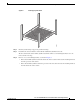 Installing the Cisco SFS 7008P Switch into a Rack Unscrew Extra Mounting Brackets from the Chassis 144965 Figure 5 Step 5 Separate the mounting brackets from the chassis when all screws have been loosened. Step 6 With 2 or 3 people working together, lift the switch into the rack as shown in Figure 6. Chassis Set onto Shelf 144966 Figure 6 Step 7 Push the chassis into the rack until the mounting brackets are flush with the rails.