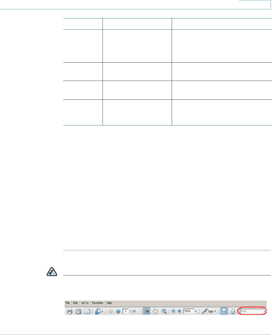 documents are published as PDF files. The PDF Find/Search tool within Adobe® Reader® lets you find information quickly and easily online. You can perform the following tasks: - Finding Text in a PDF