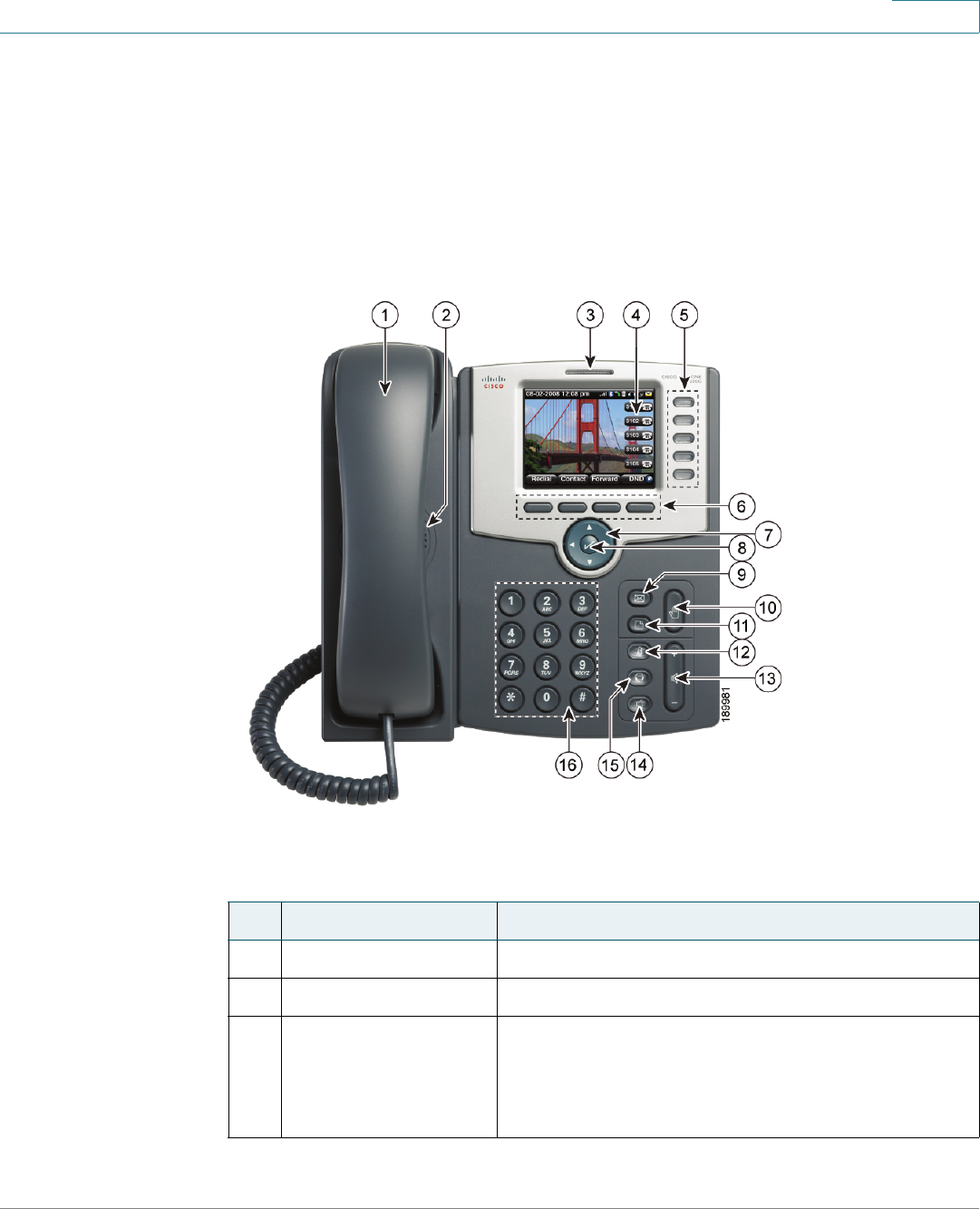 Figure 1 Cisco SPA525G and Cisco SPA525G2 Phone Components