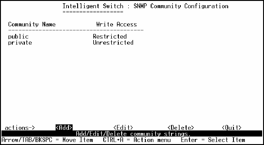 Use this page to Add/ Edit/ Delete SNMP community strings.