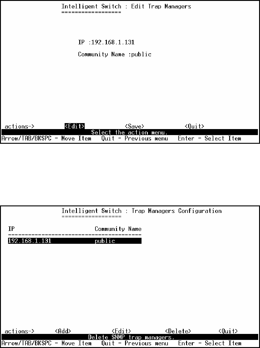 2. Choose the trap manager that you want to delete and then press enter.