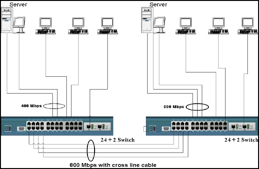 into a trunk. Trunk can also be used to connect server to switches for higher bandwidth service