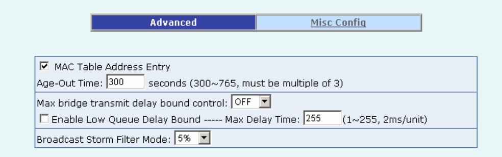 switch's address table. The valid range is 300~765 seconds. Default is 300 seconds.