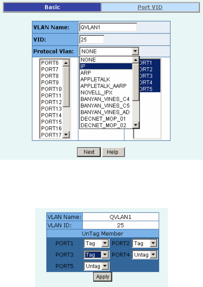 7. Uses this page to set the outgoing frames are VLAN-Tagged frames or no. Then click Apply.