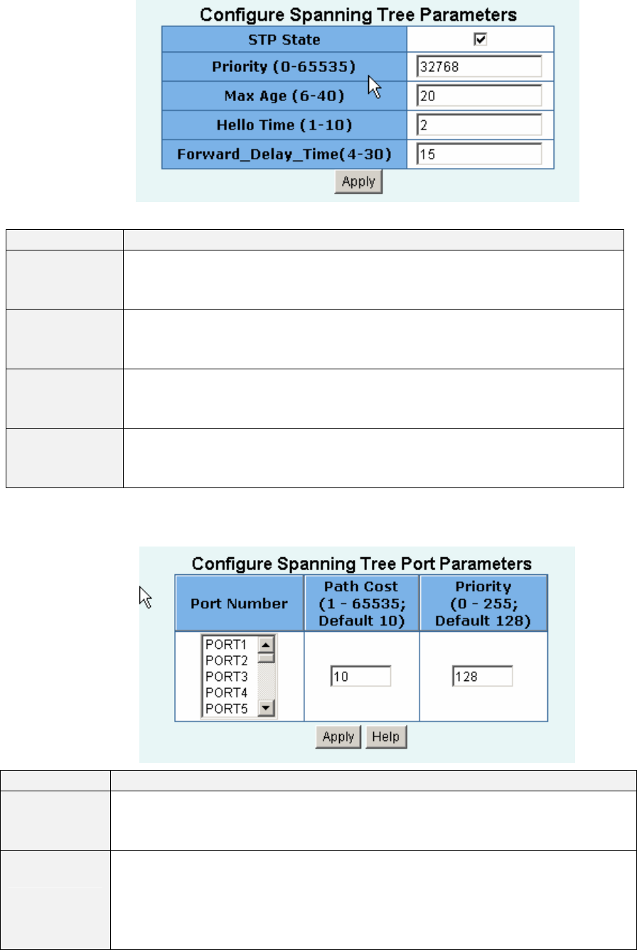 3. You can setting new value for STP parameter, then click set Apply button to modify