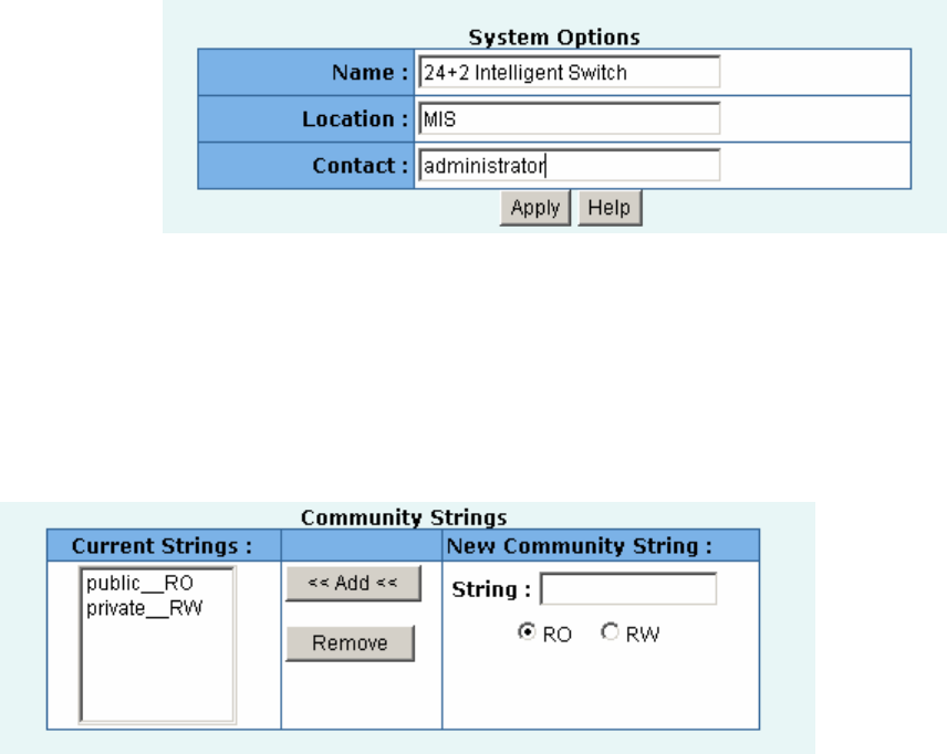 1. System Options: Use this page to define management stations as trap managers and to enter