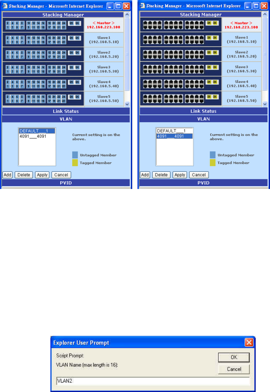 To Add a new VLAN, press " Add" the VLAN Panel. They will come out two script prompt to ask