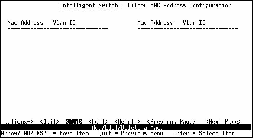 1. Press <Add> --> <Edit> key to add a filter MAC address.