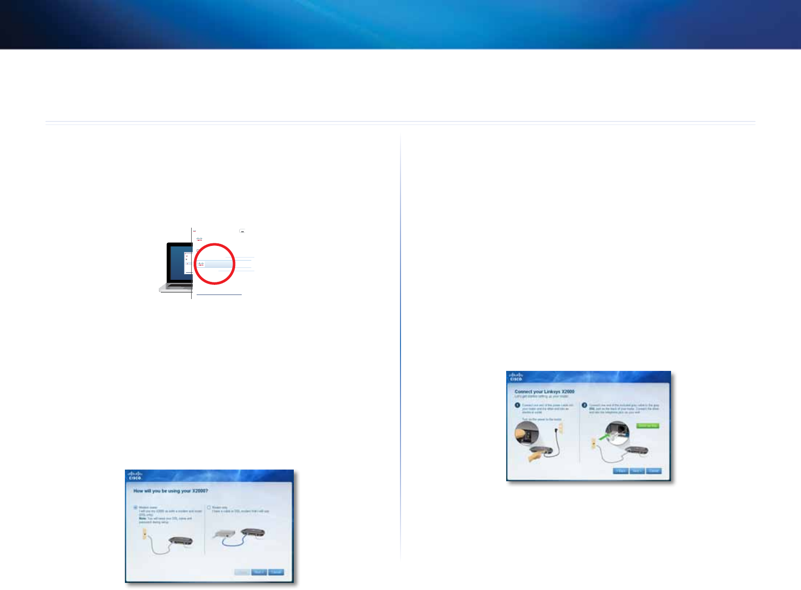 à l'installation de votre Linksys X2000/X3000) apparaît. Vous êtes invité à