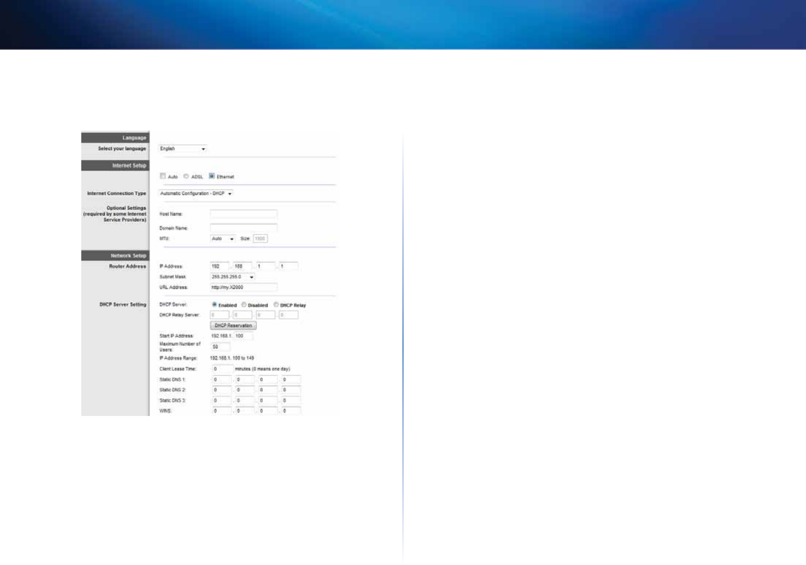 The default Internet Connection Type is Automatic Configuration - DHCP