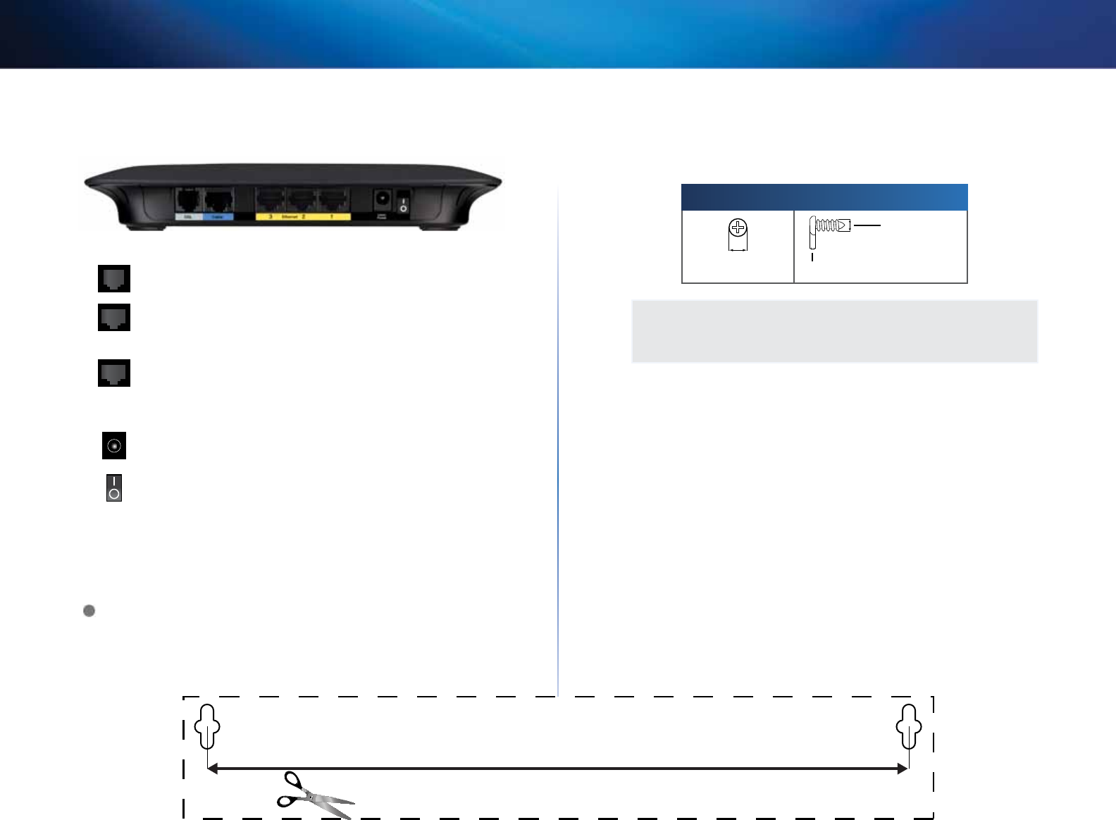 Routern har två väggmonteringsuttag på undersidan. Avståndet mellan