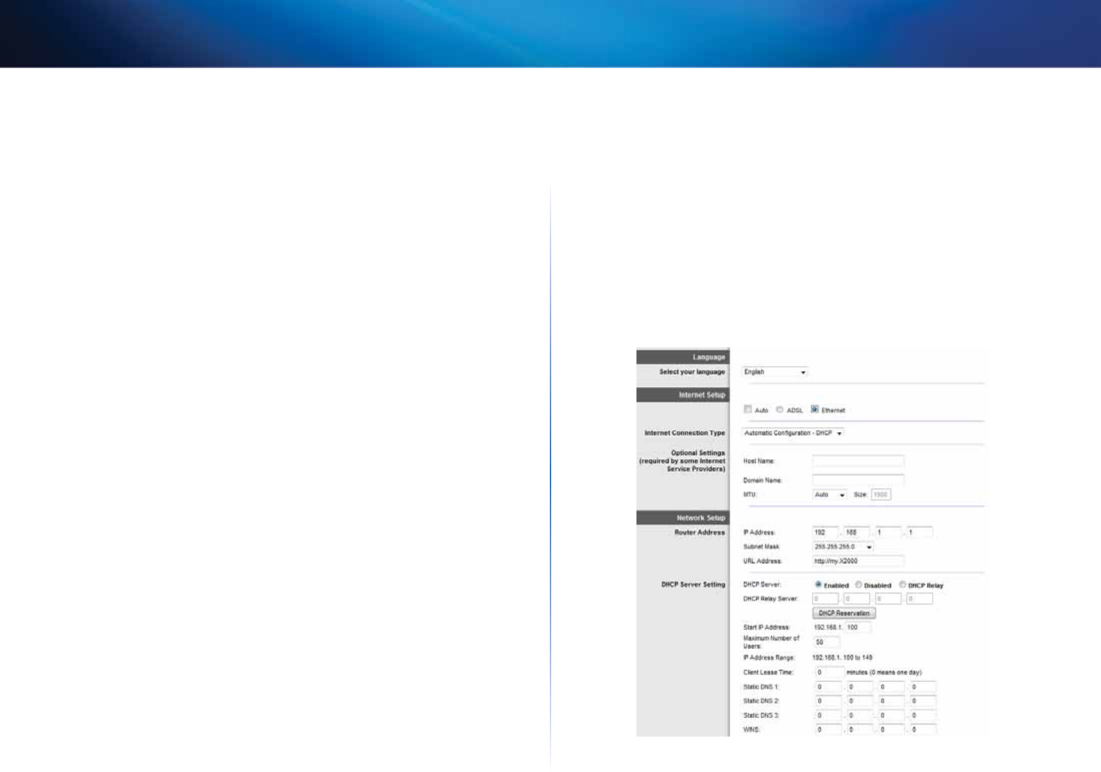 Om du väljer läget Ethernet (endast router) är följande fält tillgängliga: