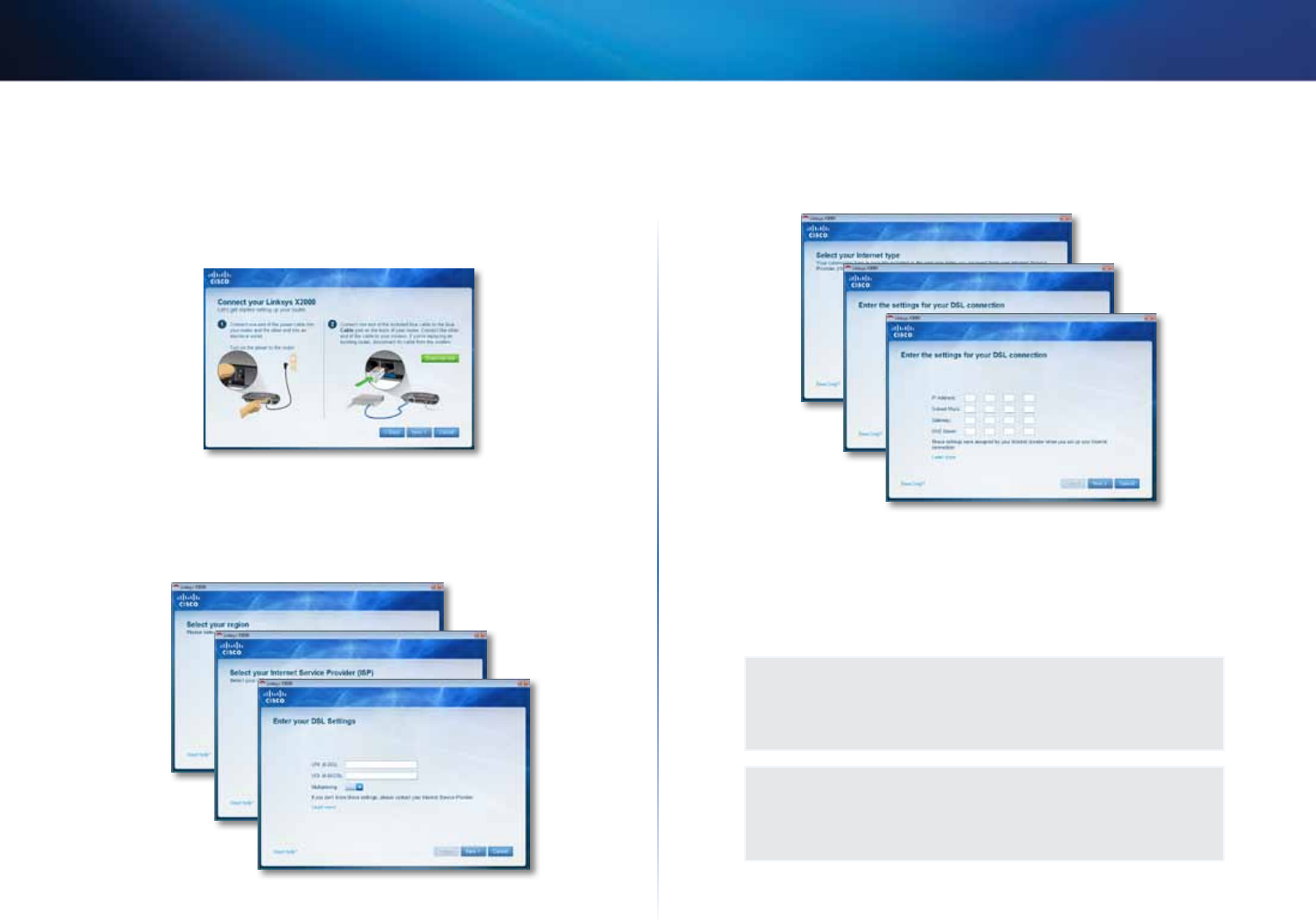 Sélectionnez votre région, votre FAI, et les paramètres DSL fournis par