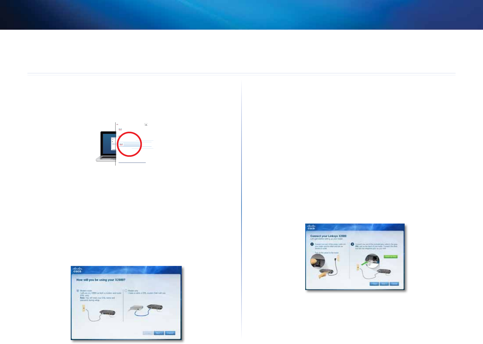 Der Bildschirm We are now setting up your Linksys X2000/X3000 (Linksys