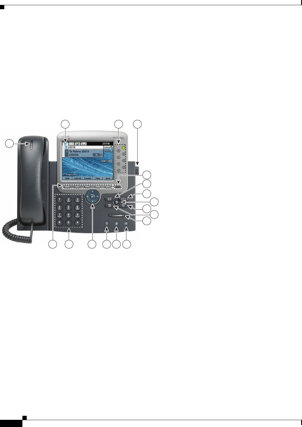Figure 1-2 shows the main components of the Cisco Unified IP Phone 7971G-GE/7970G.