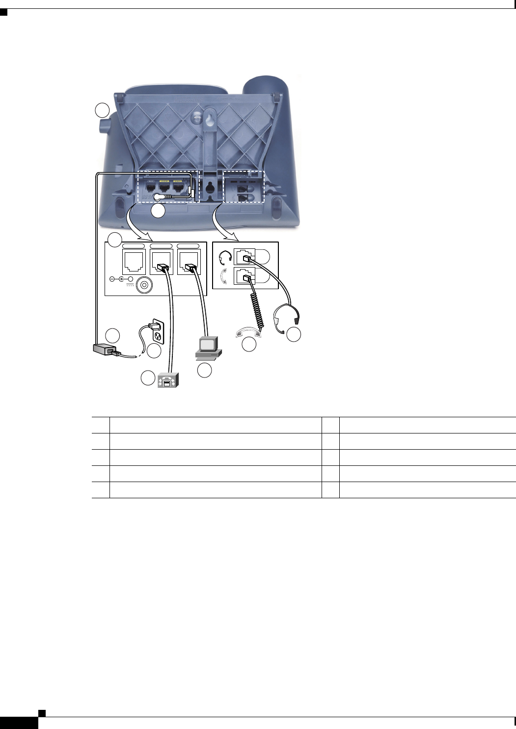 Cisco Unified IP Phone 7965G and 7945G Rear Cable Connections: