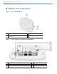 Cisco Catalyst 9130AX Series Access Points 5 AP Views, Ports, and Connectors Figure 1 Face of the 9130AXI Model 1 Status LED 2 Location of the ports and connectors on the head of the AP. Figure 2 3 USB 2.0 port Ports and Connectors on the Head of the 9130AXI Model 1 Kensington lock 4 RJ-45 console port 2 Security hasp for padlocking AP to mounting bracket 5 5 GbE port 3 Mode button 6 USB 2.