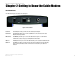 Cable Modem with USB and Ethernet Connections Table of Contents Chapter 1: Introduction 1 Welcome What’s in this Guide? 1 1 Chapter 2: Getting to Know the Cable Modem Back Panel Ports Front Panel LEDs 3 3 4 Chapter 3: Connecting the Cable Modem 5 Overview Connection Using the Ethernet Port Connection Using the USB Port 5 5 6 Chapter 4: Installing the USB Driver for Windows XP Overview Instructions for Installing the Driver Chapter 5: Installing the USB Driver for Windows 2000 Overview Instructio